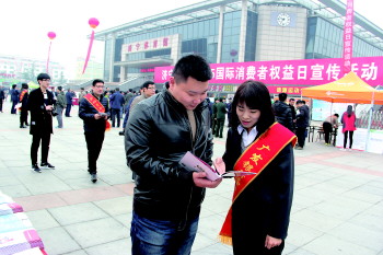 广发银行济宁分行组织开展3.15消费者权益保护日外出宣传活动。