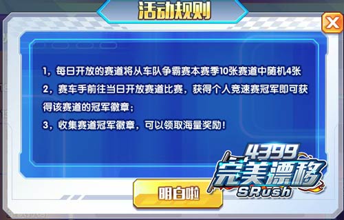 这是一个车队争霸的训练好机会,在竞速场训练车队争霸赛里的图,还能获得奖励!